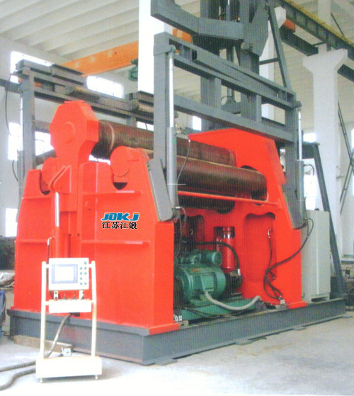 上工作輥升降、下工作輥水平移動及上、下工作輥的旋轉(zhuǎn),側(cè)倒軸承體傾倒、復(fù)位,對料裝置均由液壓系統(tǒng)驅(qū)動。 液壓系統(tǒng)中的主要元件油泵、馬達、各閥組元件、密封件等均選用優(yōu)質(zhì)配套產(chǎn)品,性能穩(wěn)定、質(zhì)量可靠。 江蘇江鍛機械科技有限公司設(shè)計生產(chǎn)的水平下調(diào)式三輥卷板機,廣泛應(yīng)用于水電、化工、航空、造船、建筑、鍋爐、橋梁、金屬結(jié)構(gòu)、機械制造等各行業(yè)。